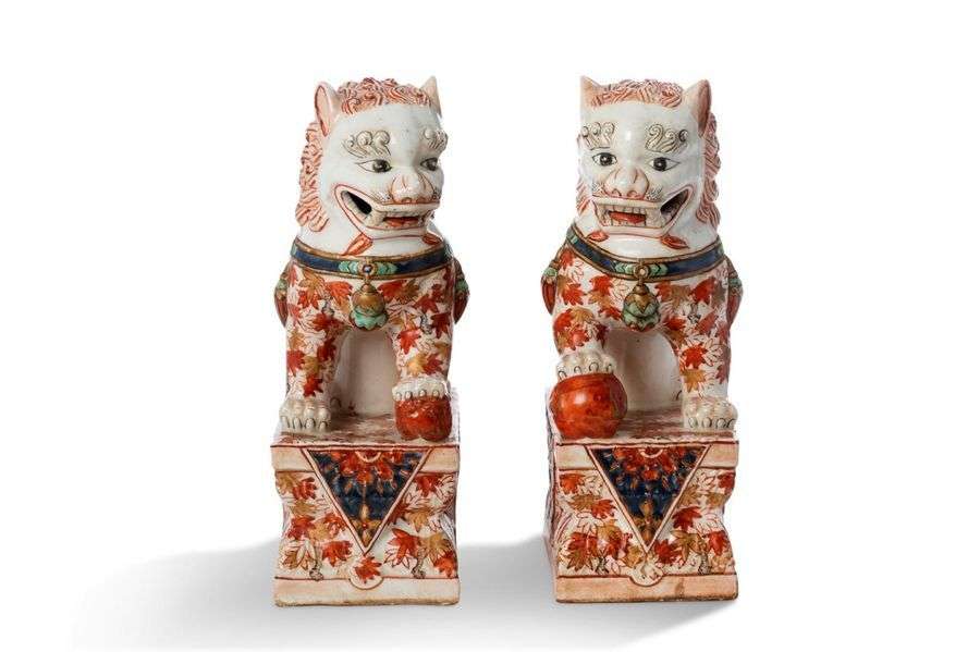 伊万里瓷风格狮子一对