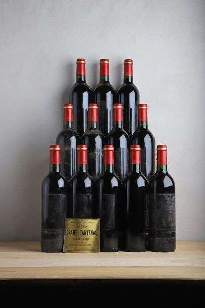 12 B CHÂTEAU BRANE CANTENAC (Caisse Bois d'origine) étiquettes décollées - 1990 - GCC2 Margaux