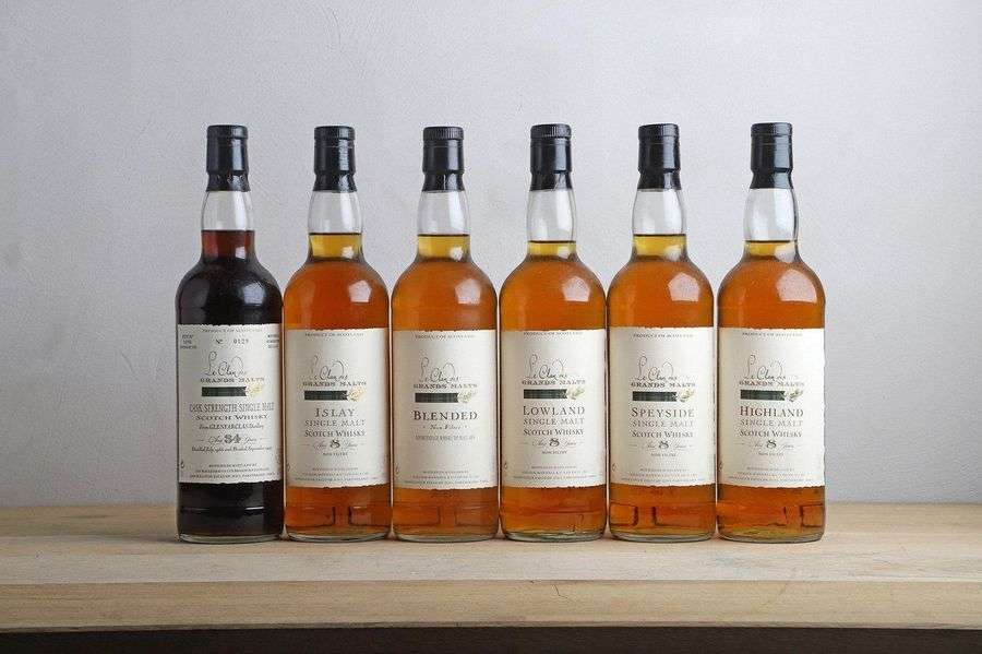 LOT DE 6 BOUTEILLES DE WHISKY "LE CLAN DES GRANDS MALTS"COMPRENANT (avec 6 verres dégustation) - NM -