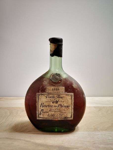 1 B ARMAGNAC VIEILLE FINE RÉSERVE DES PRINCES (5 cm sur forme basquaise| e.t.h| clm.s| capsule avec cire abimée) - 1928 - Gélas & Fils