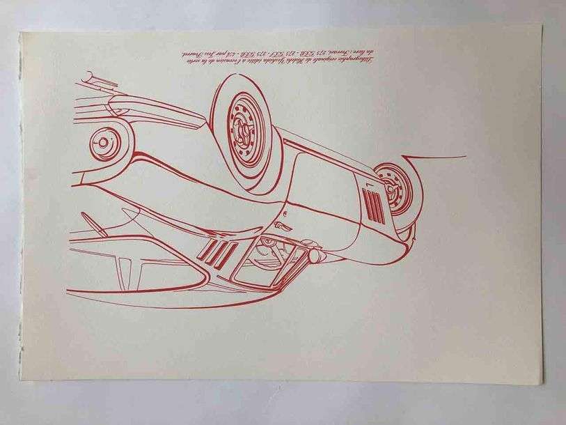 Lithographie de Yoshida représentant une Ferrari 275 GTB, 38 X 56 cm environ