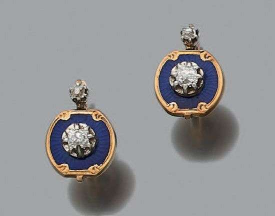 PAIRE DE DORMEUSES Émail et diamants de taille rose, or 18K (750).