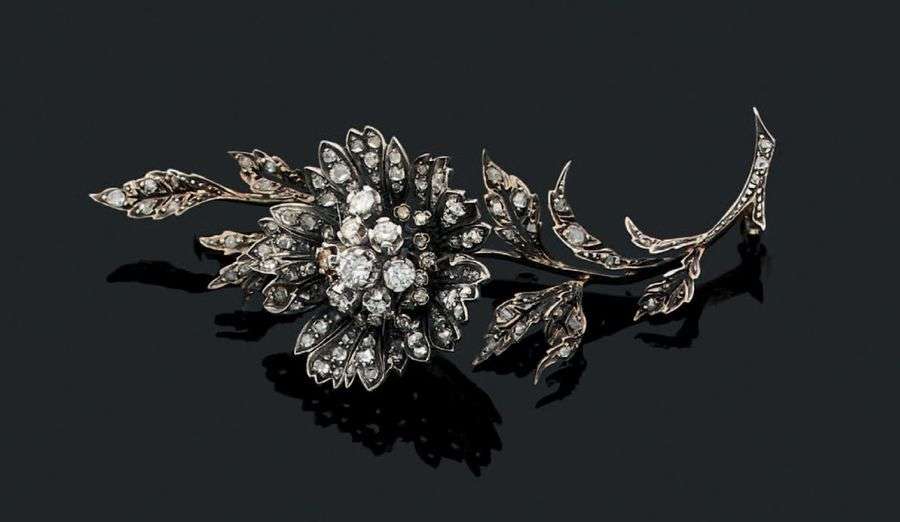 Fleur, diamants taille rose, diamants de taille ancienne, or 18K (750) et argent (<800).