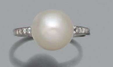 Perle fine, diamants calibrés, or gris 18K (750).