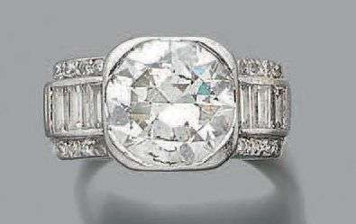 Diamant demi taille épaulé de diamants baguettes et diamants taille huit-huit, platine (850).