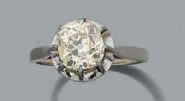 Diamant de forme coussin taille ancienne, or gris 18K (750) et platine (950).