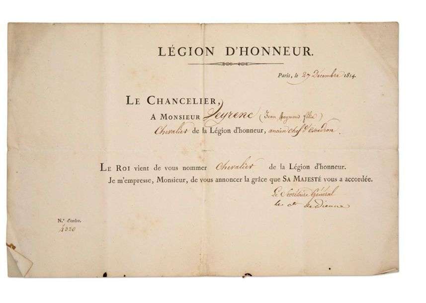 Leyrenc ancien chef d’escadron. Ordre royal, le 27 Décembre 1814.