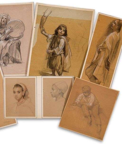 Le rêveur. Enfant à la cage. Jeune fille. Jeune garçon.