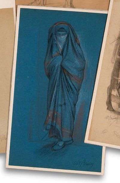 Fusain et réhauts de craie sur papier contrecollé sur carton, signé en bas à droite