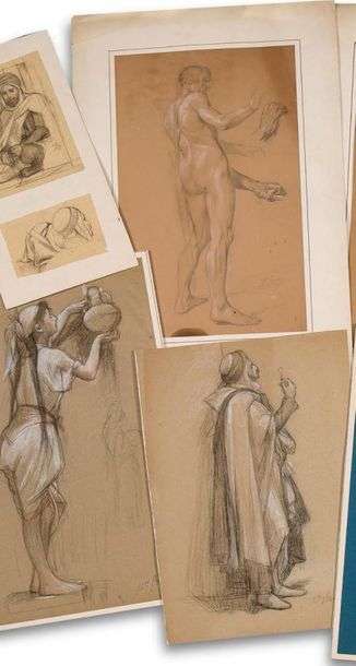 Le bedouin assis. Le chanteur au tambourin. Bédouins de dos. Le bedoin à la cape.