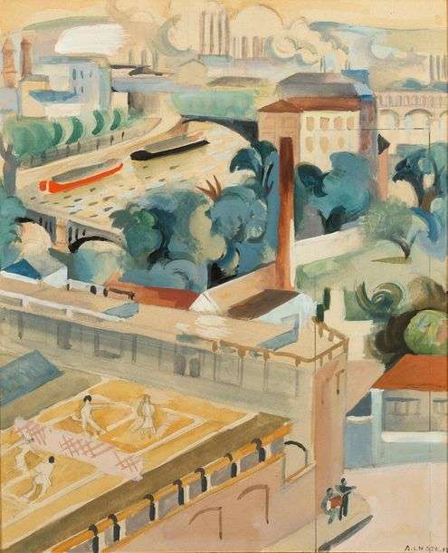 André Lhote nait en 1885 à Bordeaux, au sein d'une famille modeste. Très jeune, il rentre en apprentissage dans l'Atelier Courbaterre, spécialisé dans la sculpture ornementale sur bois. En 1899, l'artiste suit des cours d'art décoratif à l'Académie des Beaux-Arts de Bordeaux. Il se passionne pour la peinture et quitte le domicile parental pour louer avec ses camarades un grenier dans l'objectif de se consacrer uniquement à la pratique de son art. En 1907, l'artiste quitte sa ville natale et rejoint Paris où il expose pour la première fois ses oeuvres à la Galerie Eugène Druet. Lhote s'intéresse à la pratique mais aussi aux fondements théoriques de l'art. Ce critique d'art publie de nombreux articles dans la Nouvelle Revue Française, journal dont il est cofondateur.