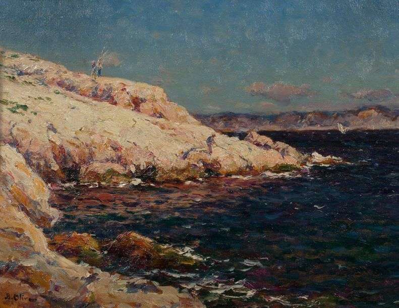 Jean-Baptiste Olive naît en 1848 à Marseille. Cet élève prodige de l'Ecole des Beaux-Arts de Marseille, réussi brillamment ses études, et reçoit même un prix en 1871. Il continue pendant quelques temps sa carrière de décorateur à Marseille et devient ensuite l'élève du peintre Antoine Vollon auprès duquel il perfectionne sa technique, notamment pour l'élaboration de natures mortes. Il décide plus tard de voyager, notamment en Italie, ce qui lui permet de découvrir de nouveaux paysages et de changer son rapport à la lumière. L'influence de l'artiste, et ami, Etienne Cornellier le mène à Paris où il s'installe en 1882. Olive travaille alors sur des projets d'envergures : décoration du Cirque d'Hiver, de pavillons de l'Exposition Universelle 1889, et également pour le fameux restaurant Le Train Bleu situé dans la Gare de Lyon. Le peintre semble n'appartenir ou se mêler à aucun mouvement artistique particulier, traitant ses tableaux avec son style propre. Son originalité, face à d'autres artistes de la capitale, se trouve dans les sujets qu'il traite dans ses peintures. Même à Paris, les paysages du Sud de la France continuent de l'inspirer et Olive les représentent toujours sans relâche. Le peintre rencontre du succès. Il expose au Salon de Paris, et reçoit quelques prix. Il meurt en 1936 à l'âge de 87 ans à Paris.