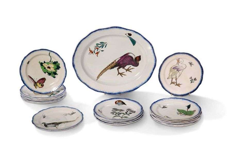 Service comprenant 14 assiettes plates, une assiette à dessert, 2 assiettes creuses et un grand plat