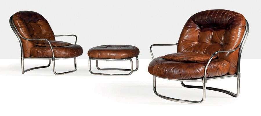 Suite de 2 fauteuils dits 915 et 1 repose pied