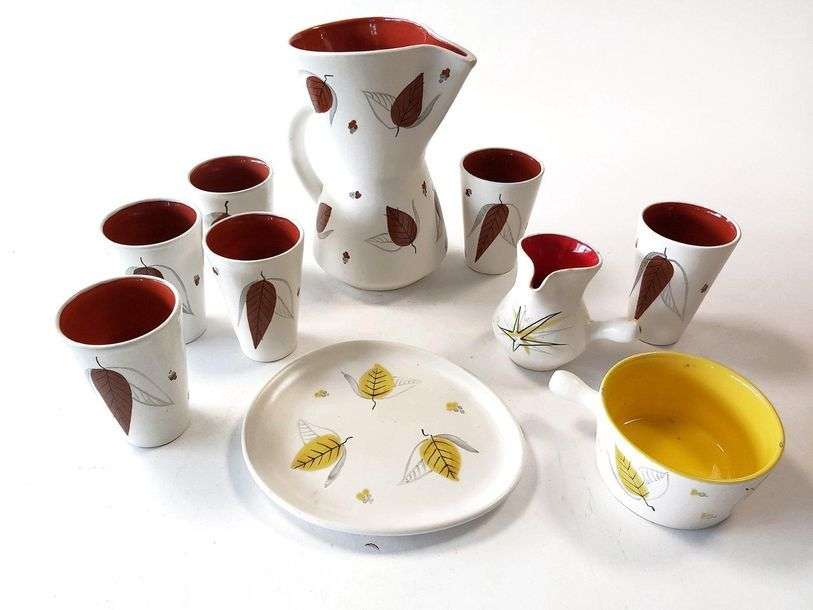 1 pichet, 6 verres, 1 assiette, 2 pièces de forme