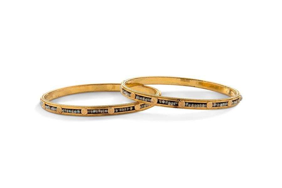 Bracelets joncs anciens sertis de petites perles, or jaune 18K (750).