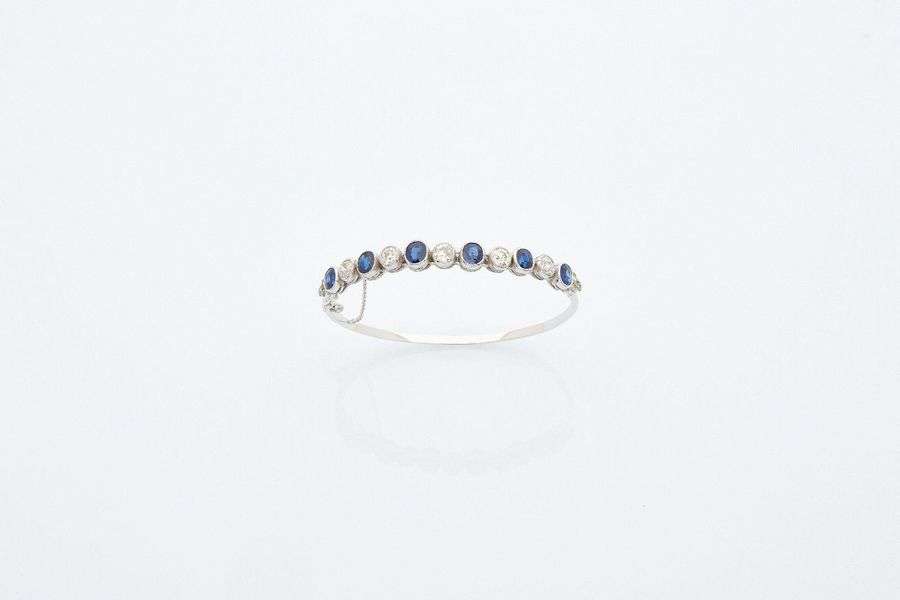 Diamants de taille ancienne, alternés de saphirs ronds, or gris 18K (750).