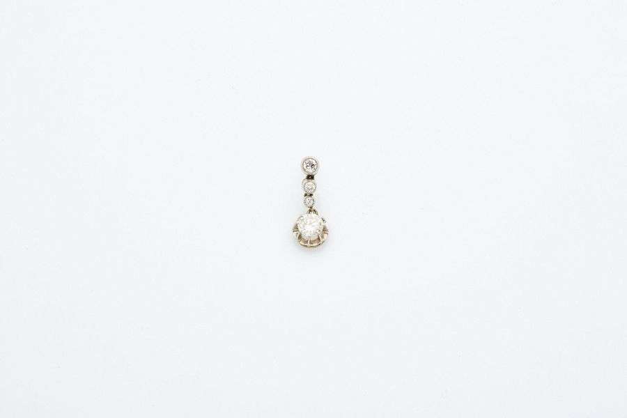 Pendant d'oreille composé d'une chute de petits diamants retenant un diamant rond de taille brillant. Platine (850).