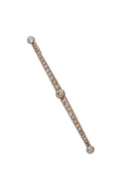 Broche barette en or jaune 18K (750) serti de trois diamants de taille anc