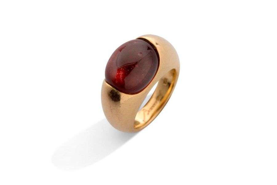 Bague jonc sertie d'un cristal coloré, or jaune 18K (750).