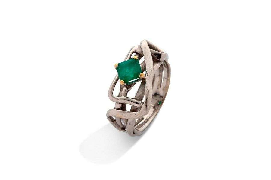 Emeraude carré (0.75 carat env.), or gris 18K (750).