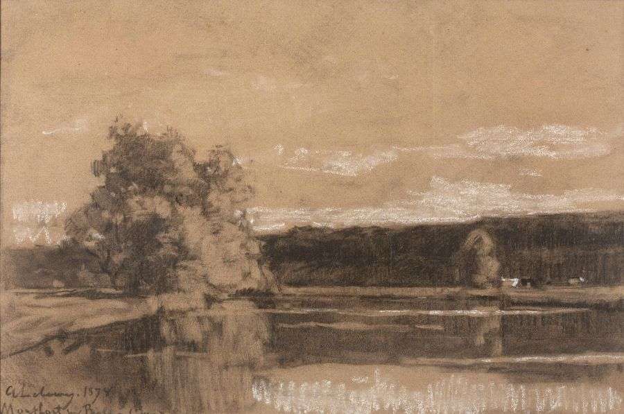 Fusain rehaussé de craie, signé, situé et daté en bas à gauche