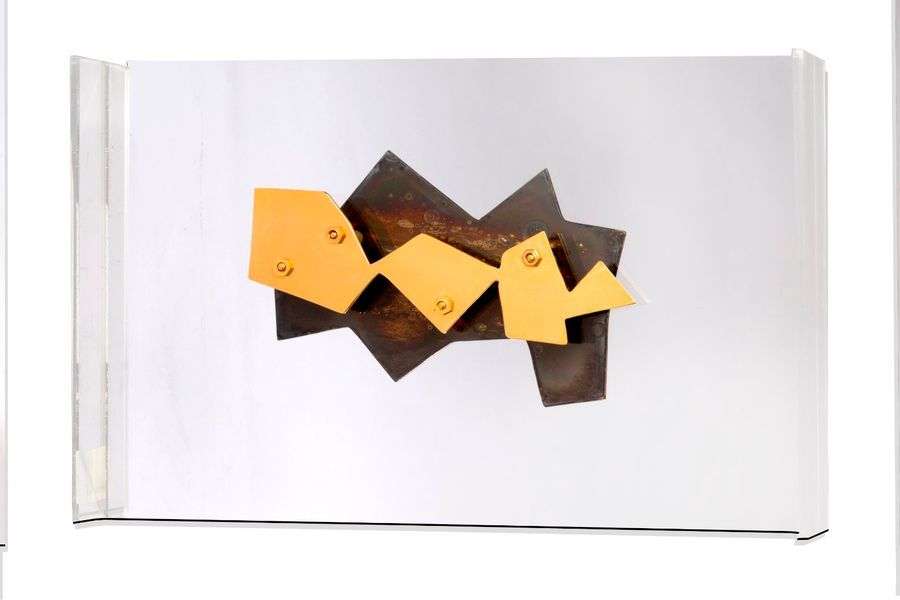Sculpture en laiton, fer chromé et plexiglas, signée et numérotée 253/100