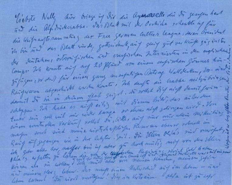 L.A.S. «OK», [vers 1941, à son amie l'actrice Nelly PALACHE]| 2 pages oblong in-4 sur papier bleu| en allemand.