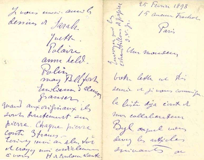 «Dear Sir avez-vous reçu les deux dessins de chevaux ? Je vous serais très obligé de me le dire au plus tôt car je vais partir à la campagne»...