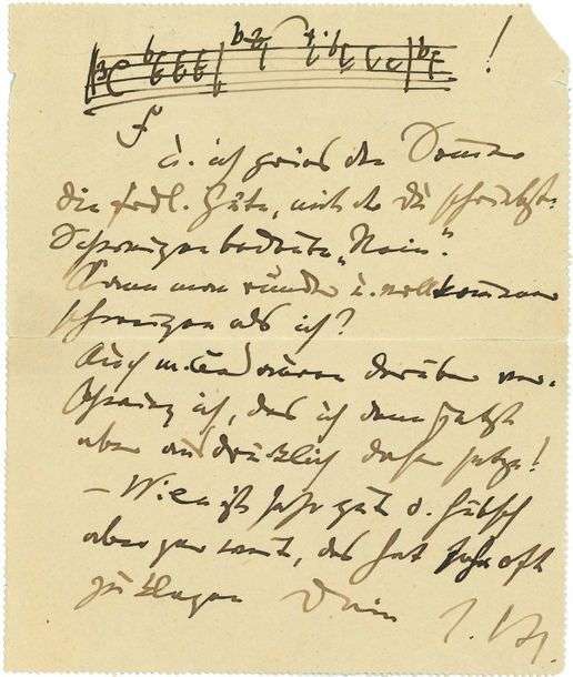 L.A.S. «J. Br.» avec MUSIQUE, [Wieden 11 octobre 1887], au Kapellmeister Julius von BERNUTH à Hambourg| 1 page in-12, adresse au verso (Karten-Brief| petite fente au pli).