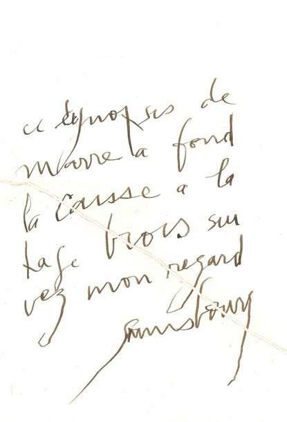MANUSCRIT autographe signé «Gainsbourg»| 1 page in-4 à l'encre brune (déchirée et recollée au scotch).