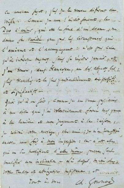 L.A.S. «Ch. Gounod», [fin 1867 ?, à son ami Ernest LEGOUVÉ]| 4 pages in-8 sur papier bleu.
