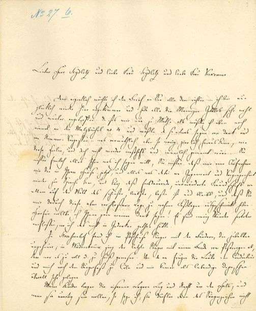 L.A.S. «Felix Mendelssohn-Bartholdy», Leipzig 20 juin 1846, à Herr et Frau Ignaz SEYDLITZ et Frau VERKENIUS (à Cologne)| 1 page et demie in-4 (montée sur onglet dans un cartonnage de papier bleu)| en allemand