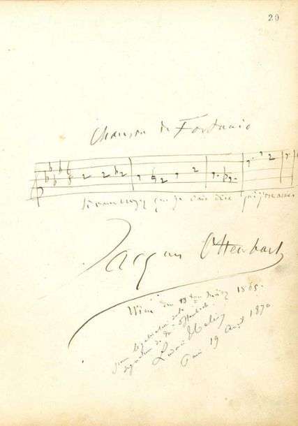 Cette page d'album est datée par Offenbach, sous sa grande signature: «Wien den 13ten März 1865».