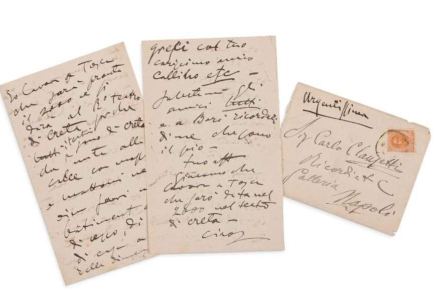 CLAUSETTI, chez Ricordi, à Naples| 6 pages in-8, enveloppe (petits trous d'épingle)| en italien.