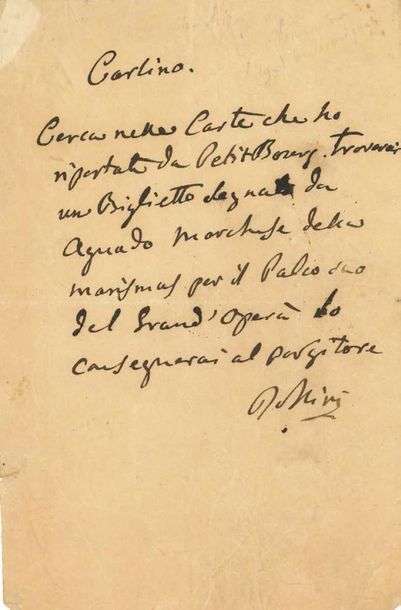 L.A.S. «Rossini», [Paris vers 1830], à CARLINO| 3/4 page in-8| en italien.