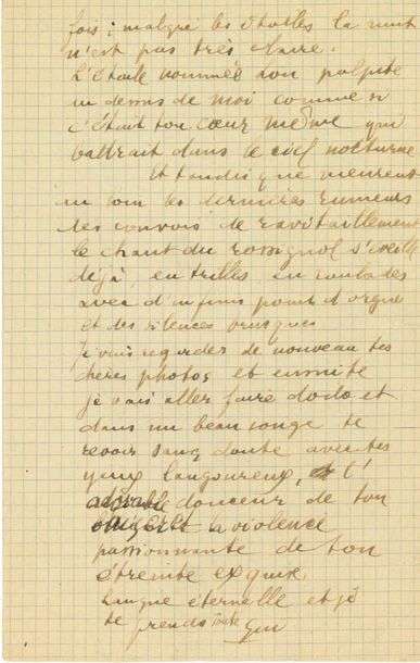 L.A.S. «Gui», 16 mai 1915, à «Ptit Lou» [Louise de COLIGNYCHÂTILLON]| 4 pages in-8 sur papier quadrillé.