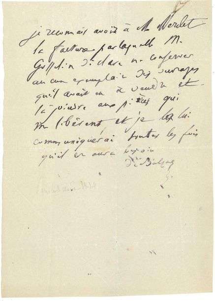 «Je reconnais avoir à M. Werdet la facture par laquelle M. Gosselin déclare ne conserver aucun exemplaire des ouvrages qu'il avait eu à vendre et la joindre aux pièces qui me libèrent, et je la lui communiquerai toutes les fois qu'il en aura besoin»...