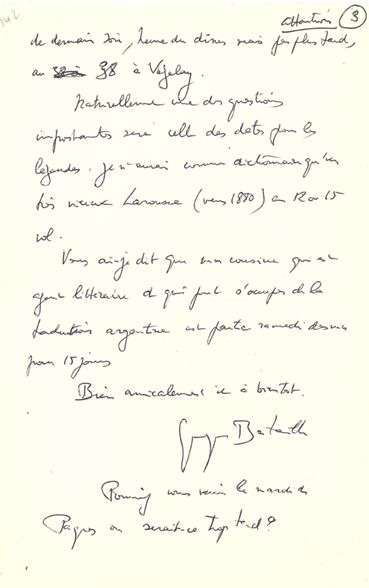 L.A.S. «Georges Bataille», Orléans 27 mars 1961, [à Jean-Marie LO DUCA]| 3 pages in-8.