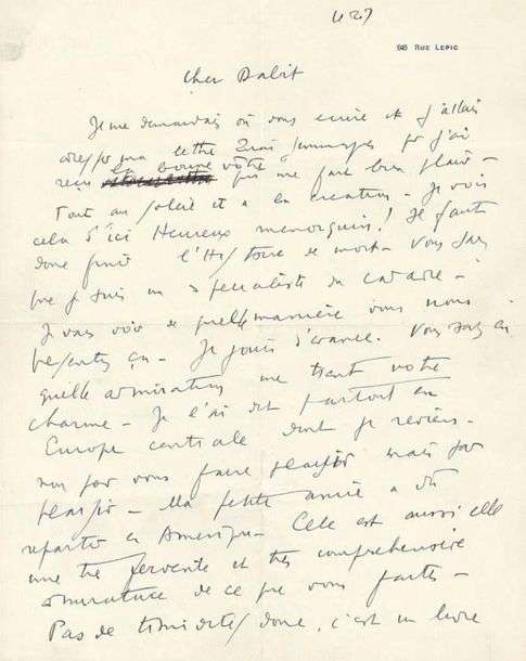 L.A.S. «L.D.», 98 rue Lepic le 27 [juin 1933], à Eugène DABIT| 2 pages in-4 à son adresse.
