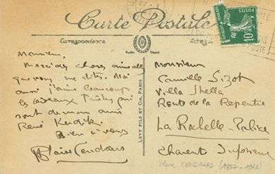 L.A.S. «Blaise Cendrars», [27 janvier 1927], à Camille Sizot, à La Rochelle