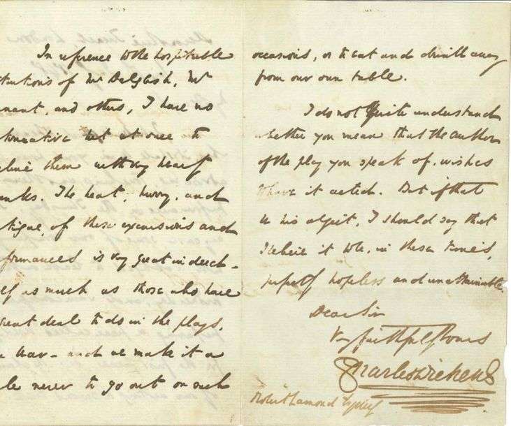 L.A.S. «Charles Dickens», Londres 6 juillet 1848, à Robert LAMOND,