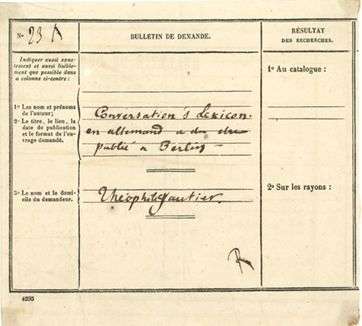 Bulletin de demande à la Bibliothèque Nationale du «Conversation's