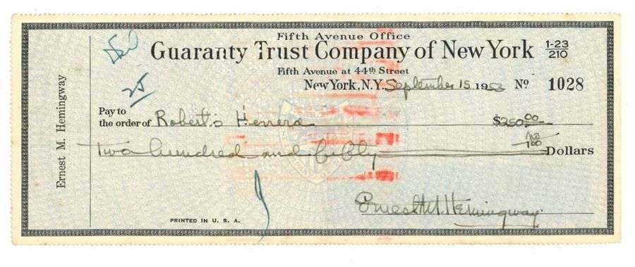 2 P.A.S. «Ernest M. Hemingway», New York 1953| 1 page oblong in-8 en partie impr.