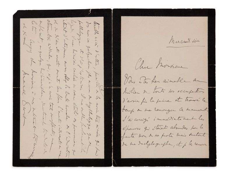 L.A.S. à Gabriel Mourey. S.l., mercredi soir (après le 15 juin 1905). 4 pp. bi-feuillet in-12 liseré de noir.
