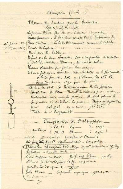 2 MANUSCRITS autographes, Atmosphère 1re lecon et Atmosphère 2e lecon| 1 page 3/4 in-fol. chaque.