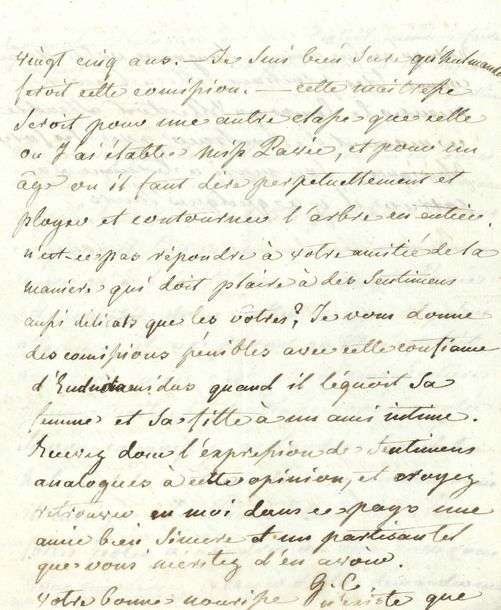 Consul: «Il m'a parlé comme à l'ordinaire d'Eliza et de votre retour, je lui ai demandé s'il avoit lu votre dernier ouvrage, il m'a répondu qu'il n'en avoit pas eu le temps»... Elle cite au père d'Eliza des remarques de sa fille témoignant de sa préférence pour la littérature et la lecture d'agrément| elle espère la voir «mieux placer ses gouts quand elle consultera sa