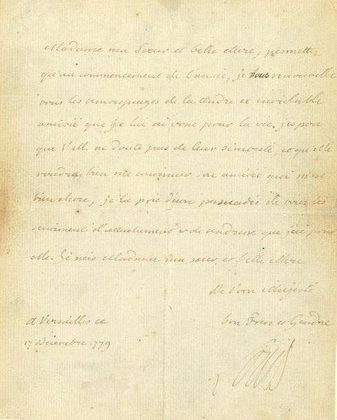 L.A.S. «Louis», Versailles 17 décembre 1779, à «Madame ma Soeur et belle Mere l'Imperatrice Douairiere Reine de Hongrie et de Boheme»,
