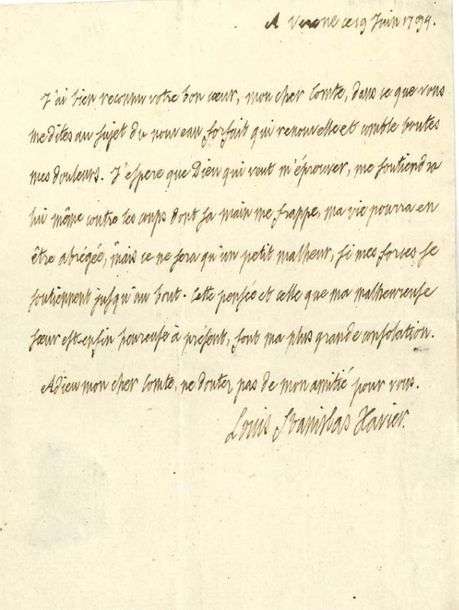 L.A.S. «Louis Stanislas Xavier», Vérone 19 juin 1794, à Joseph-Hyacinthe-