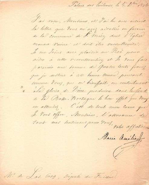 L.S. «Marie Amélie», Palais des Tuileries 5 décembre 1831, à Emmanuel de LAS CASES fils, député du Finistère| 1 page in-4.